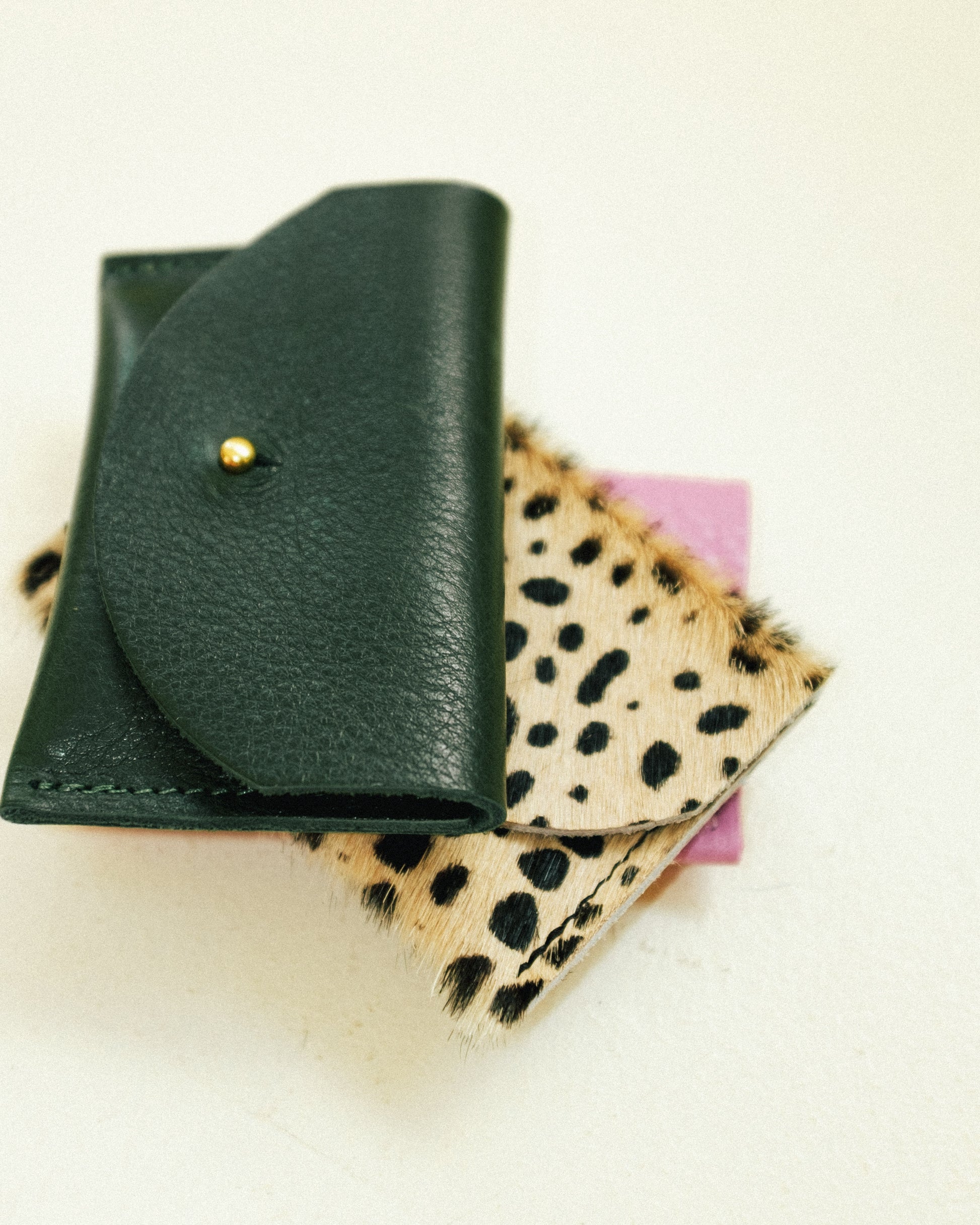 The cardholder is designed to hold credit cards and lots of cash. It is the perfect size to slip in your back pocket or put in a larger bag.