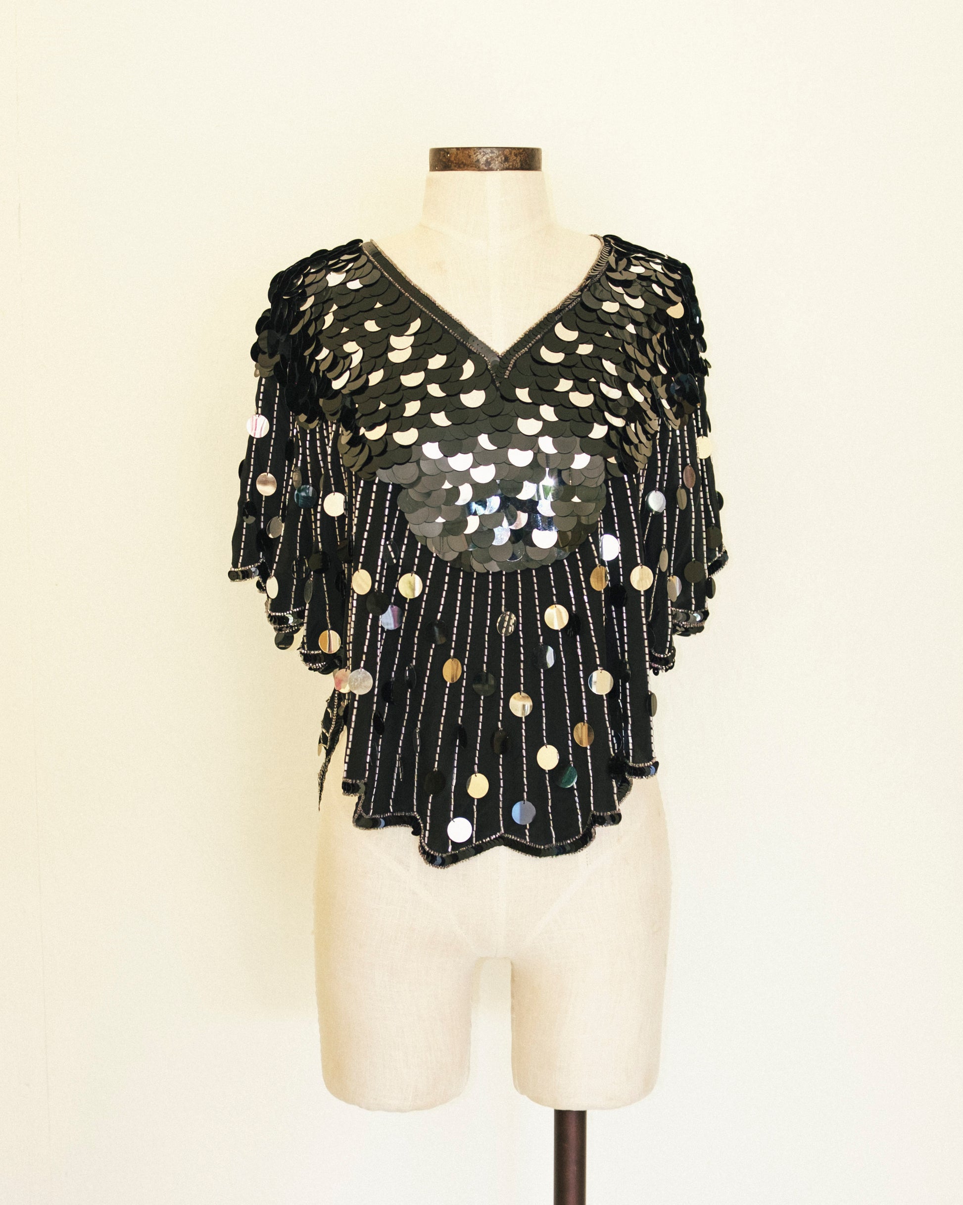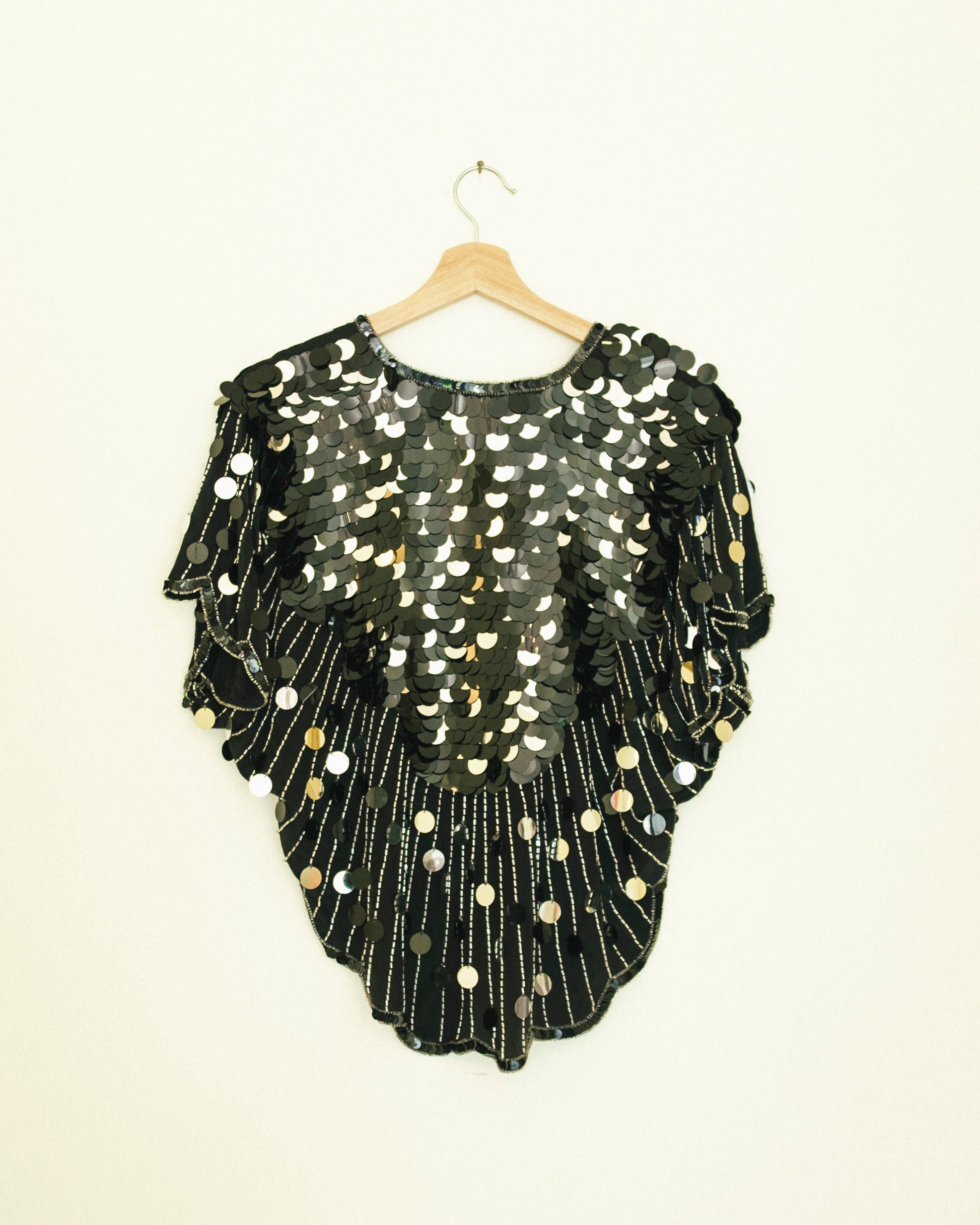 Vintage hand beaded + sequin batwing top.