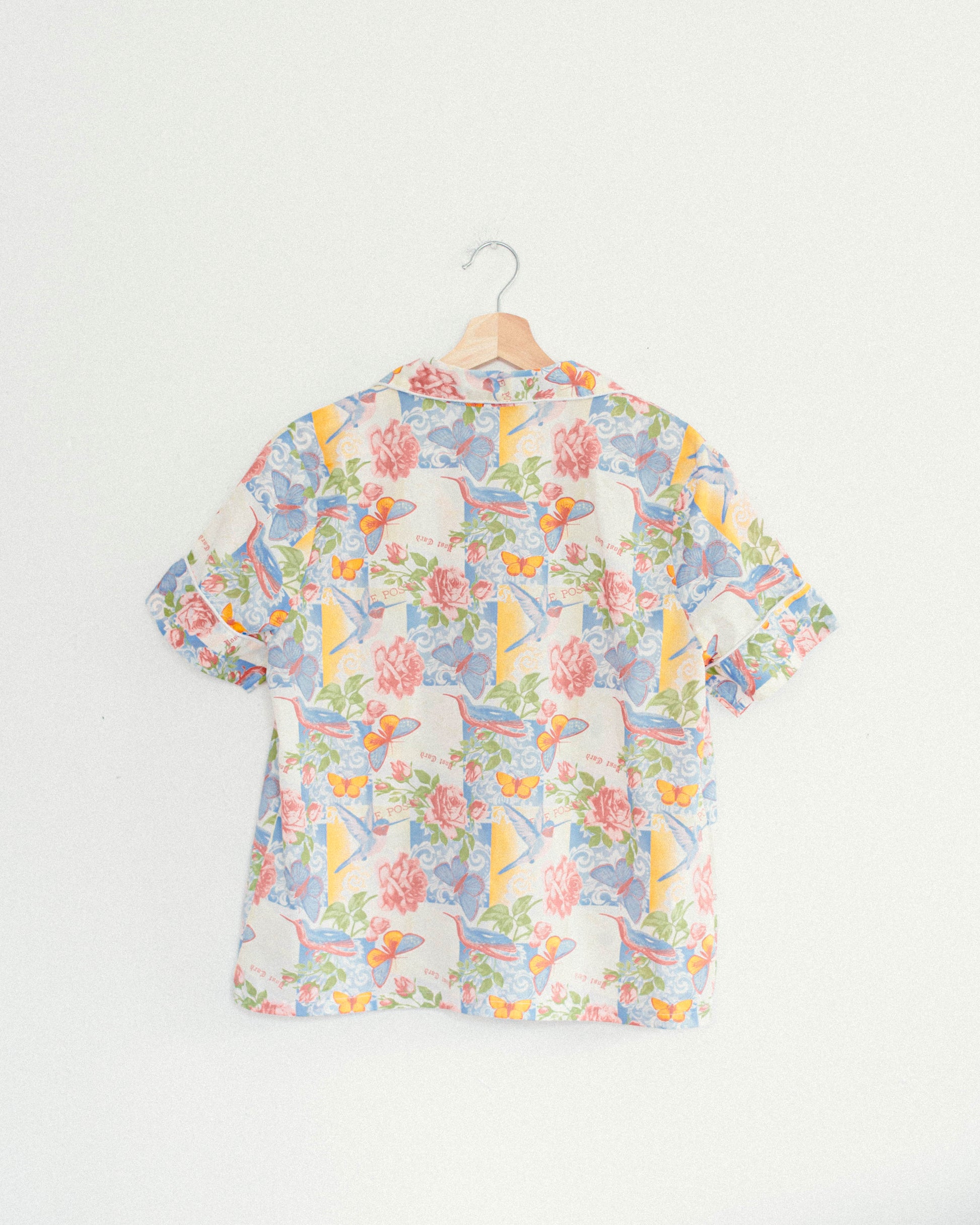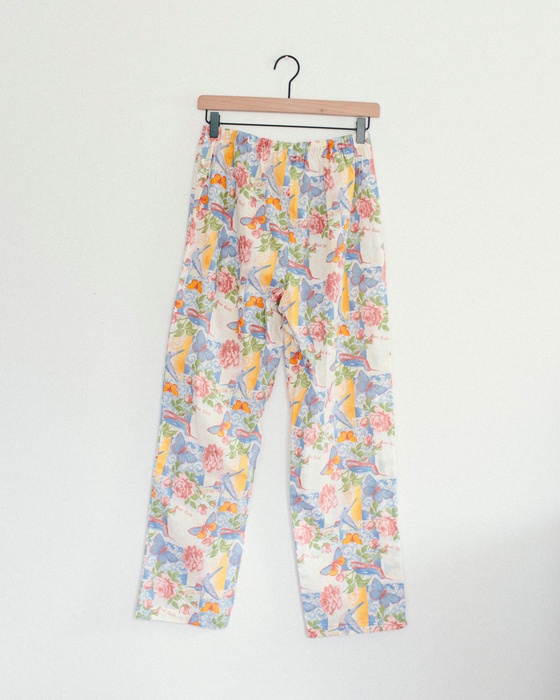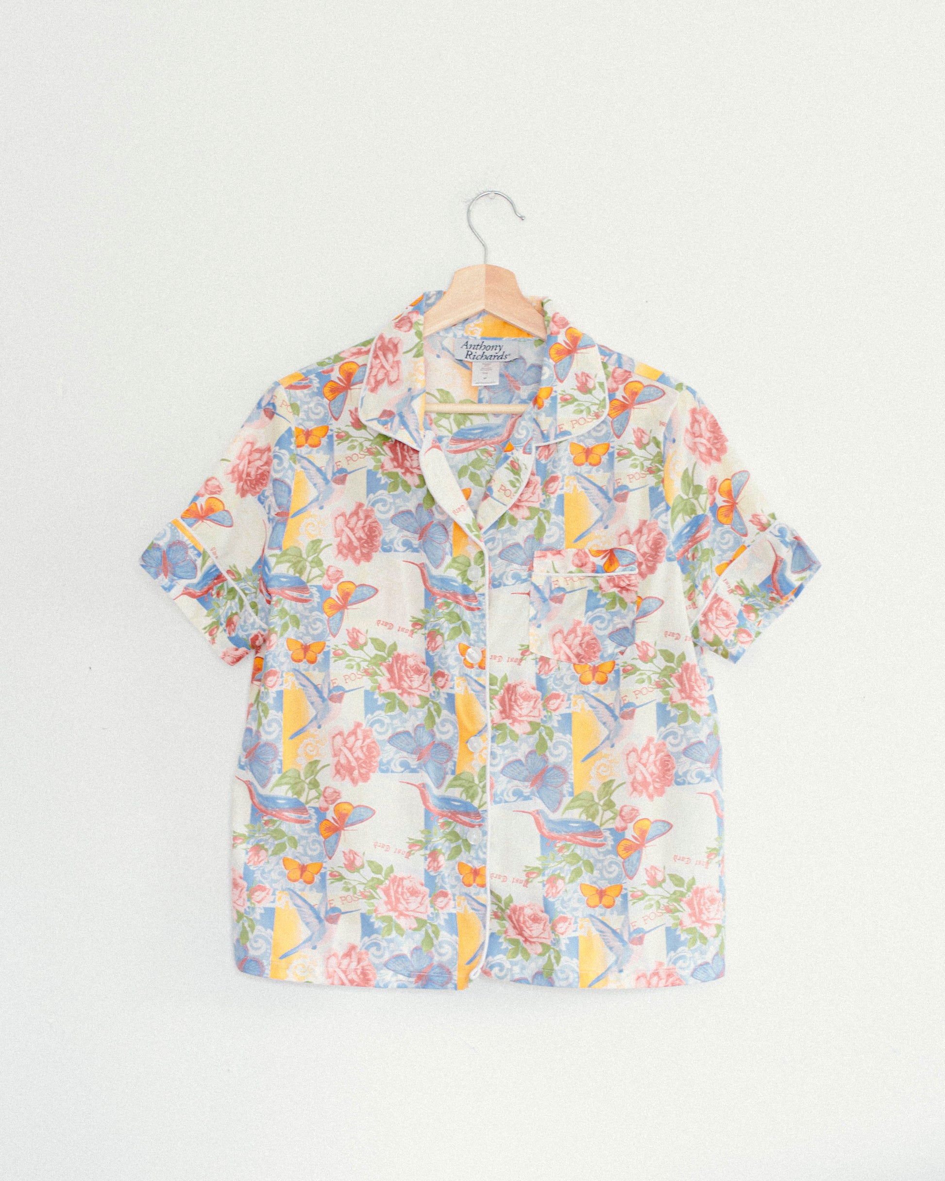 Vintage matching shirt and pant set. Pants are high waisted with an elastic waistband.