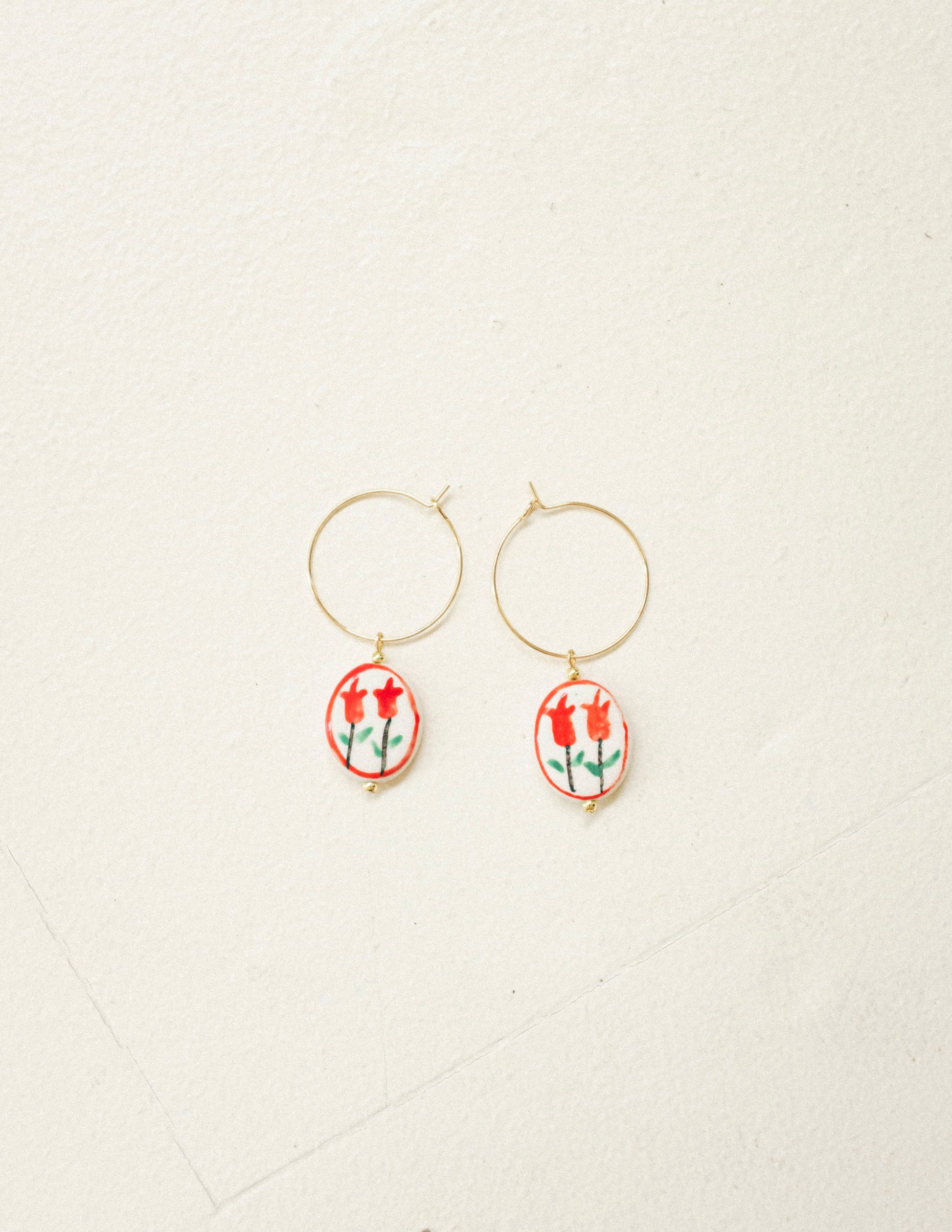 - Hand painted ceramic beads, freshwater pearls, gold plated hooks