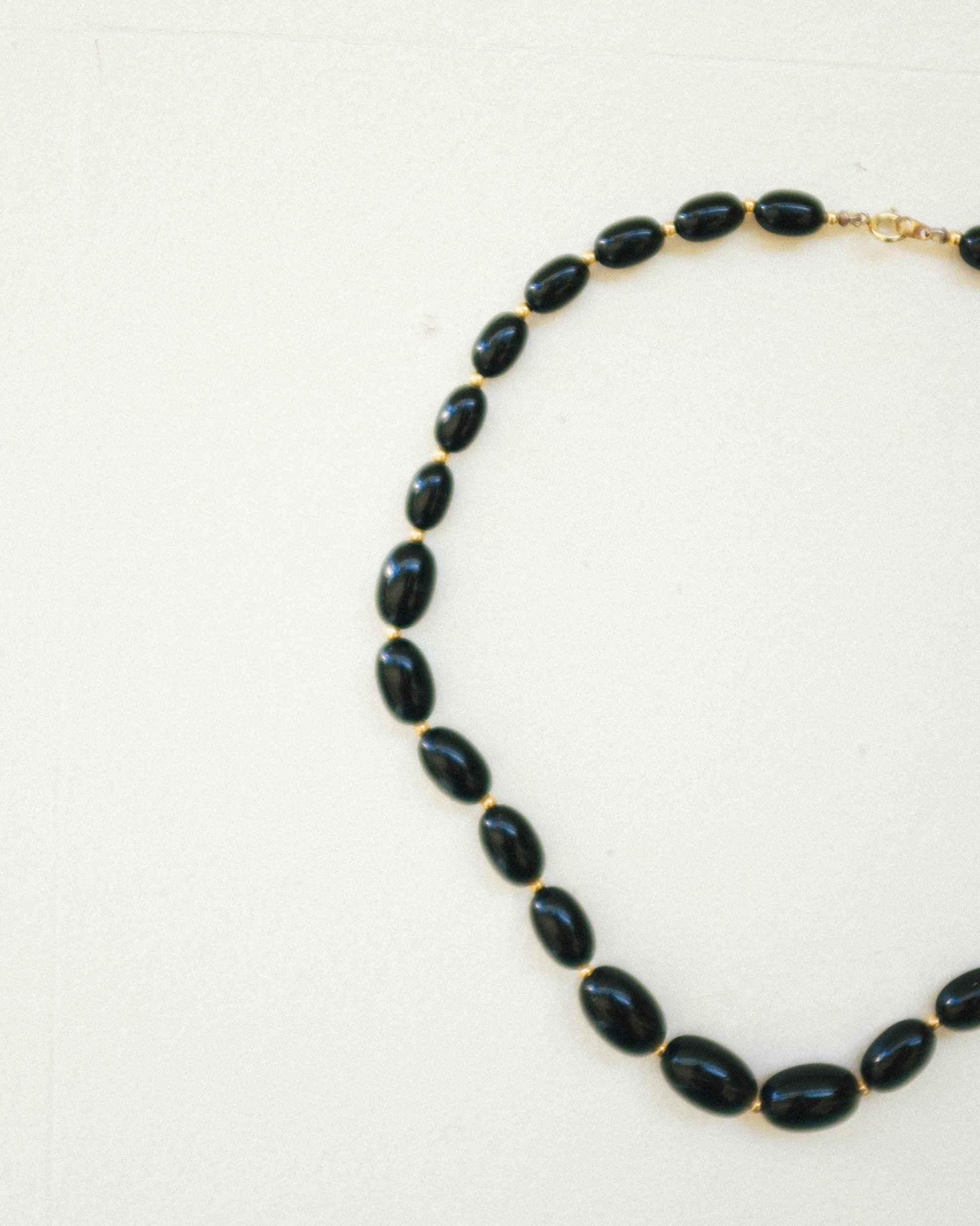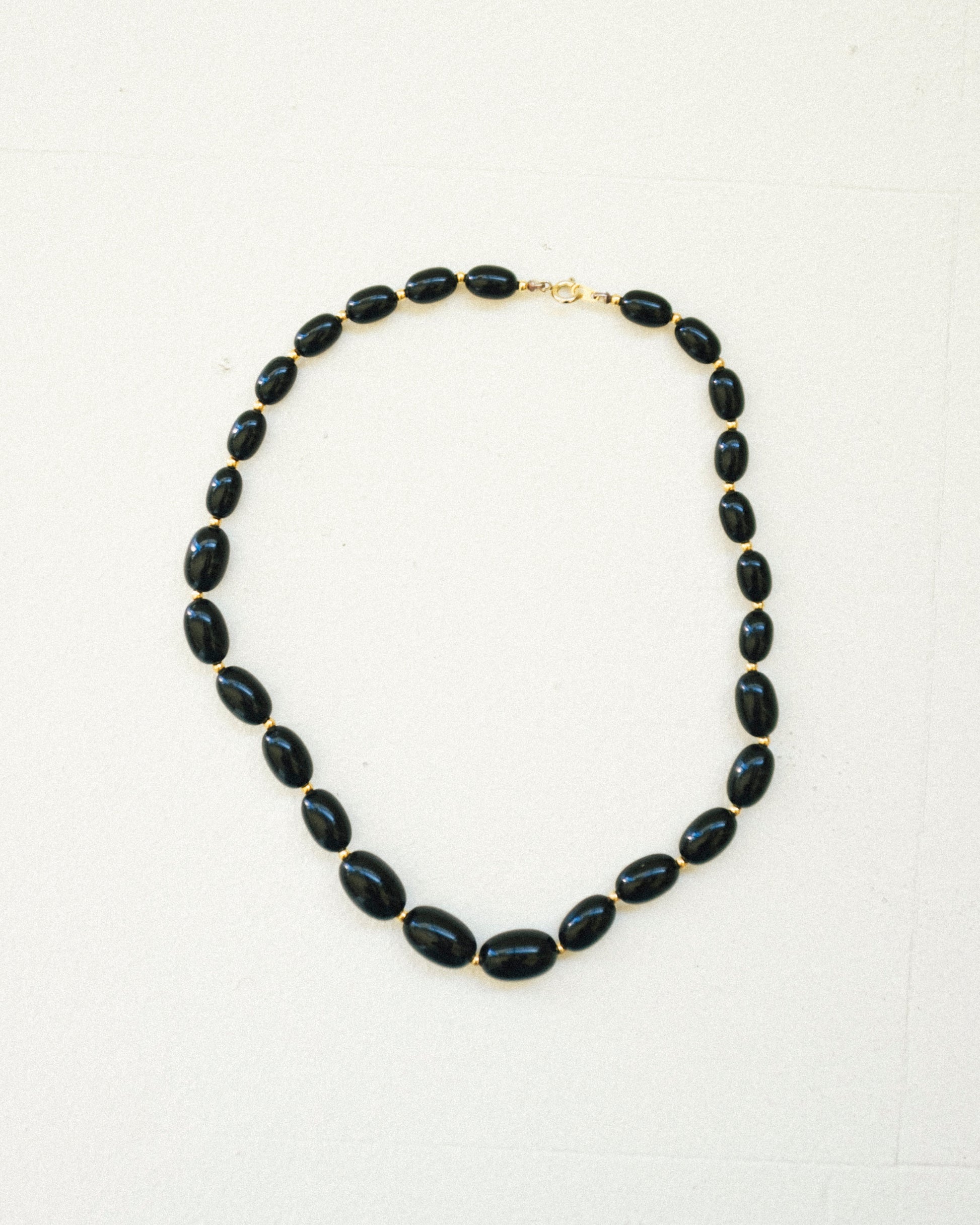 Vintage beaded necklace. Multisize black beads with gold accents.