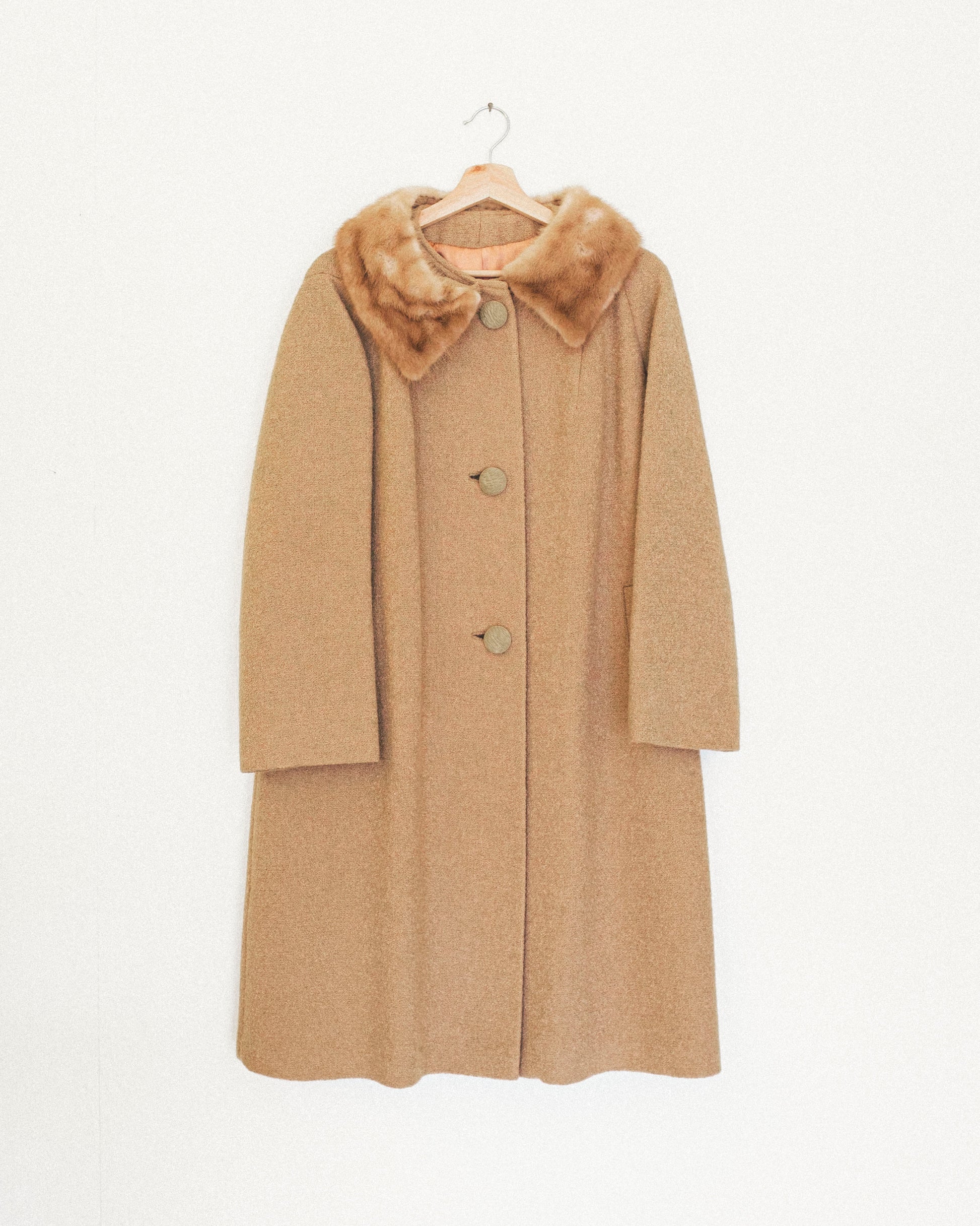 60/70's bouclé wool swing coat with mink collar.