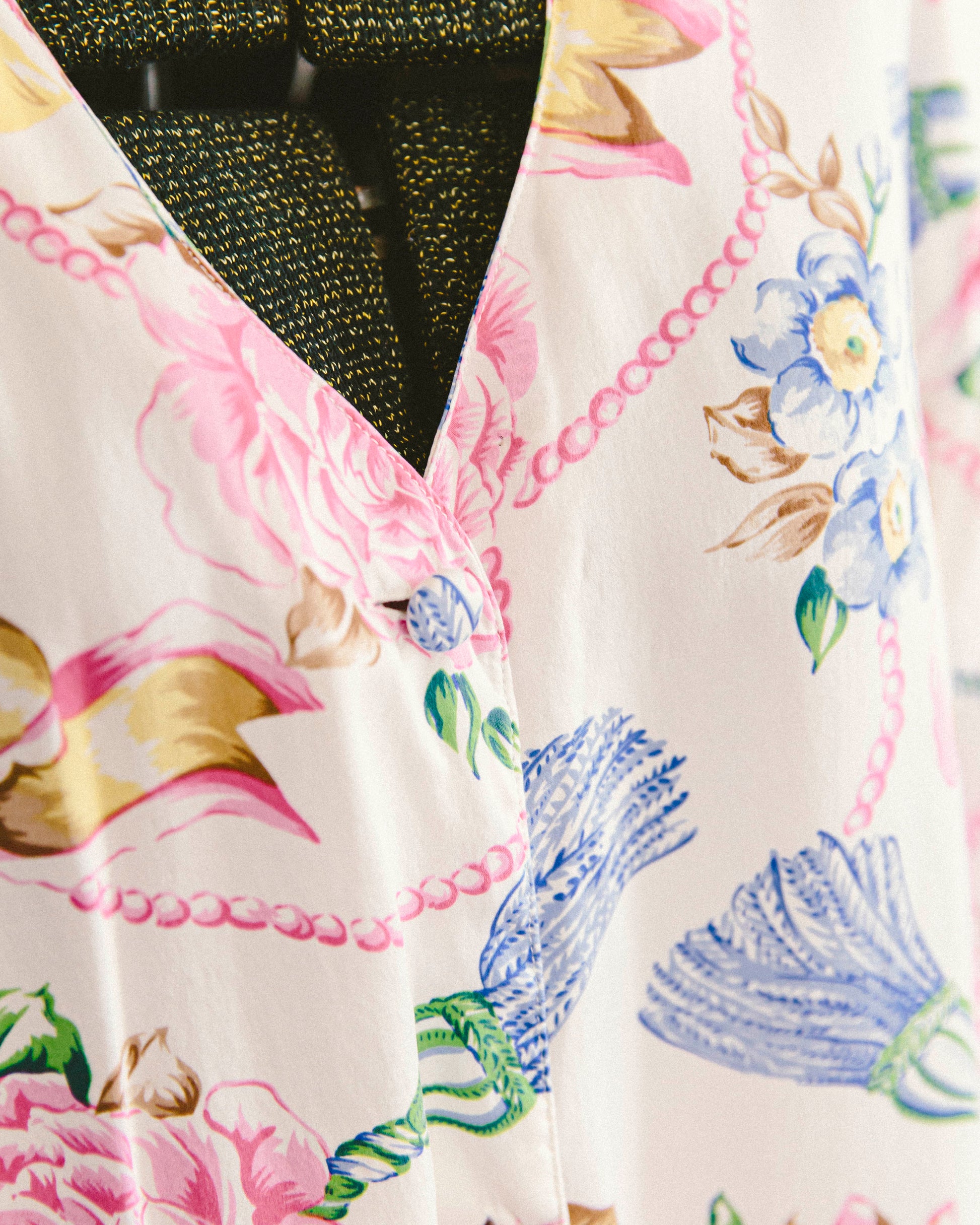 Deux trous de la taille d’une épingle au dos du chemisier, un sur le devant. Voir les photos
