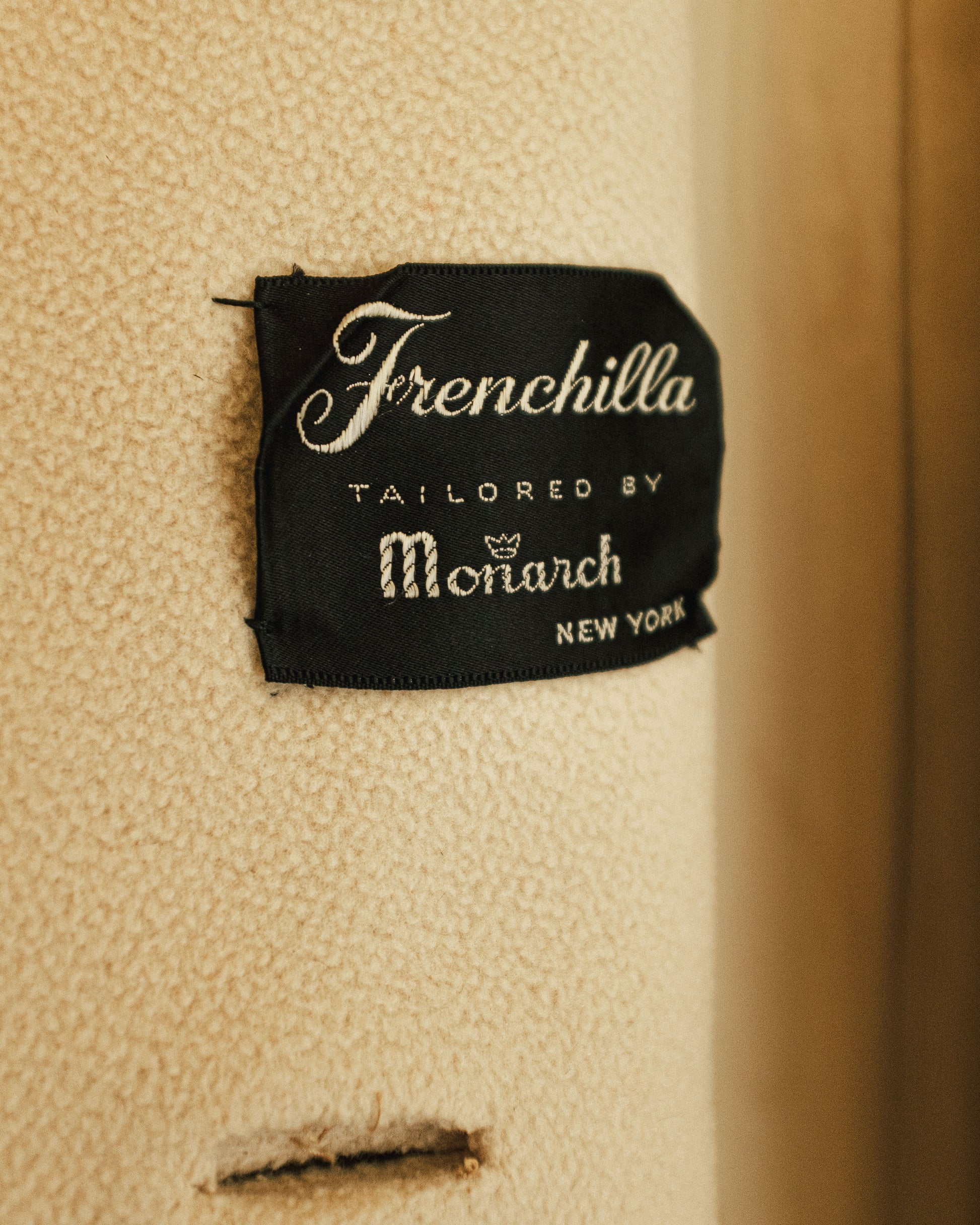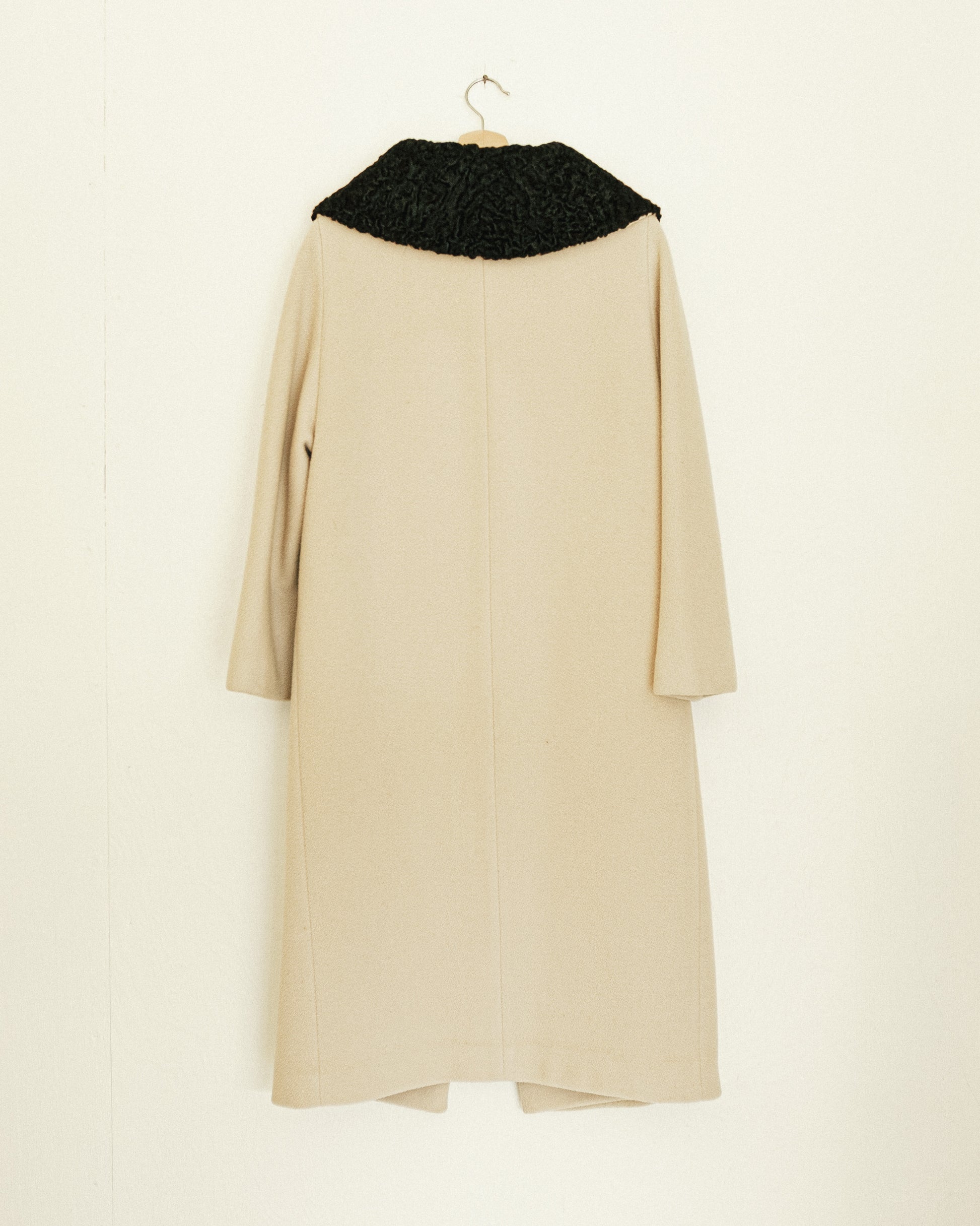 50/60s wool swing coat with persian wool collar and 3/4 sleeves.