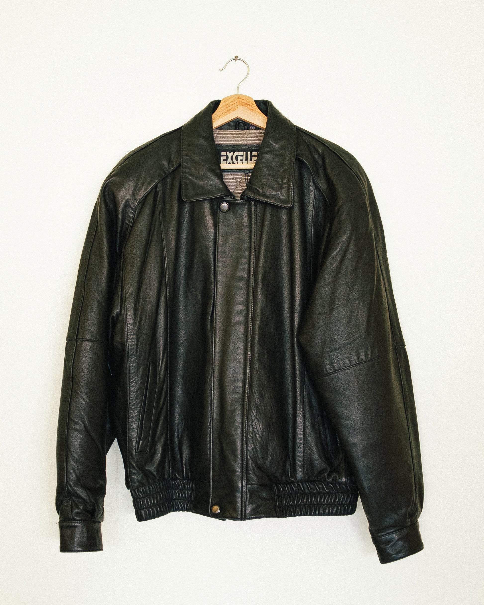 Vintage soft oversized leather bomber jacket with shoulder pads.