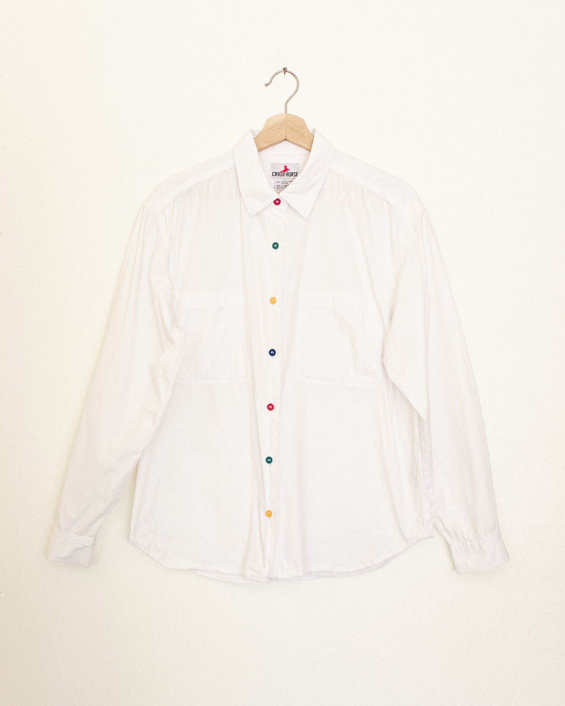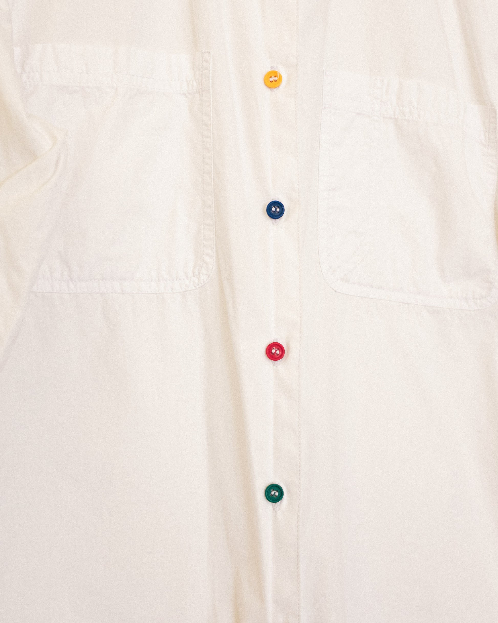 Vintage white button up with multicolor buttons.