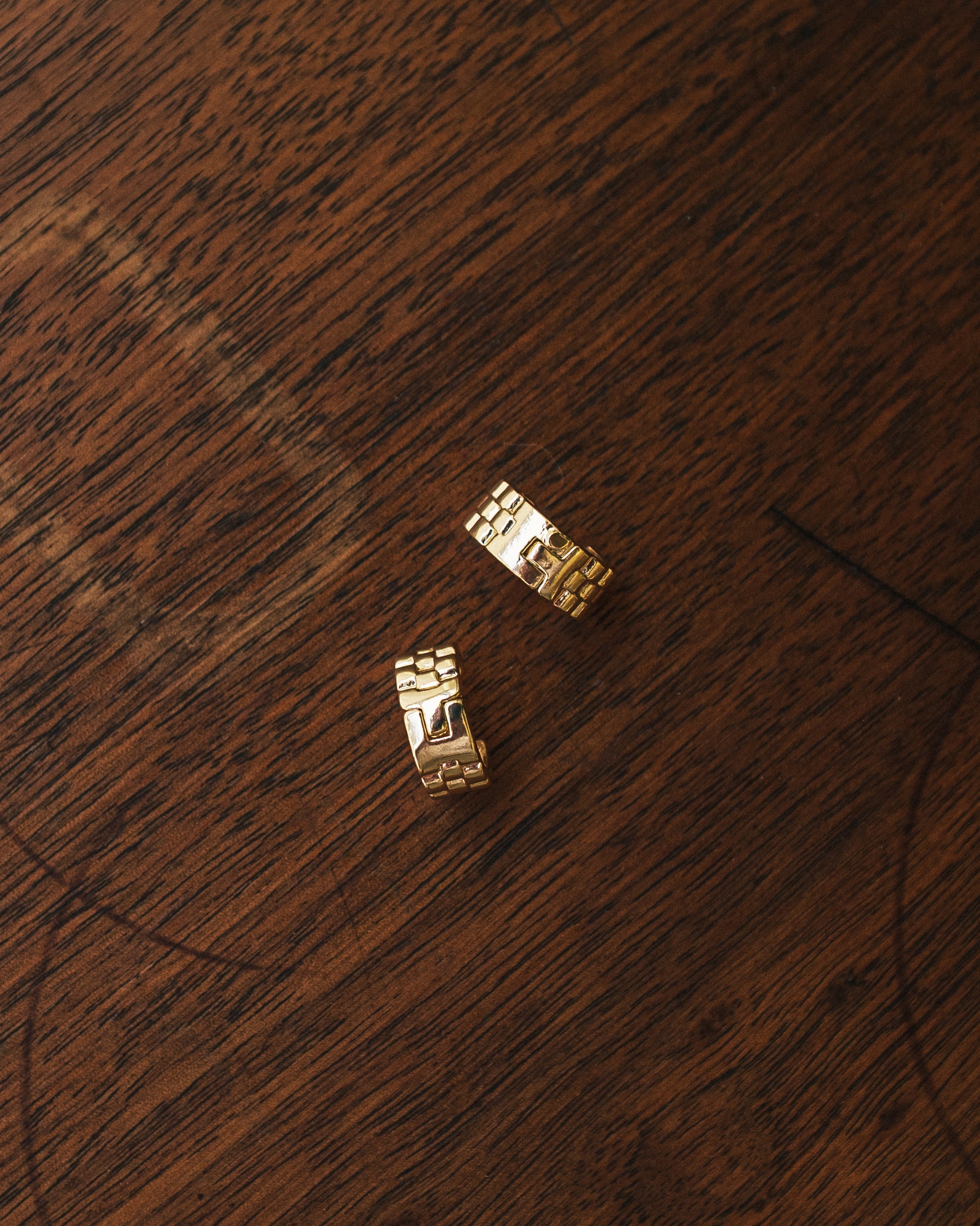 Geometric gold huggie hoop earrings.