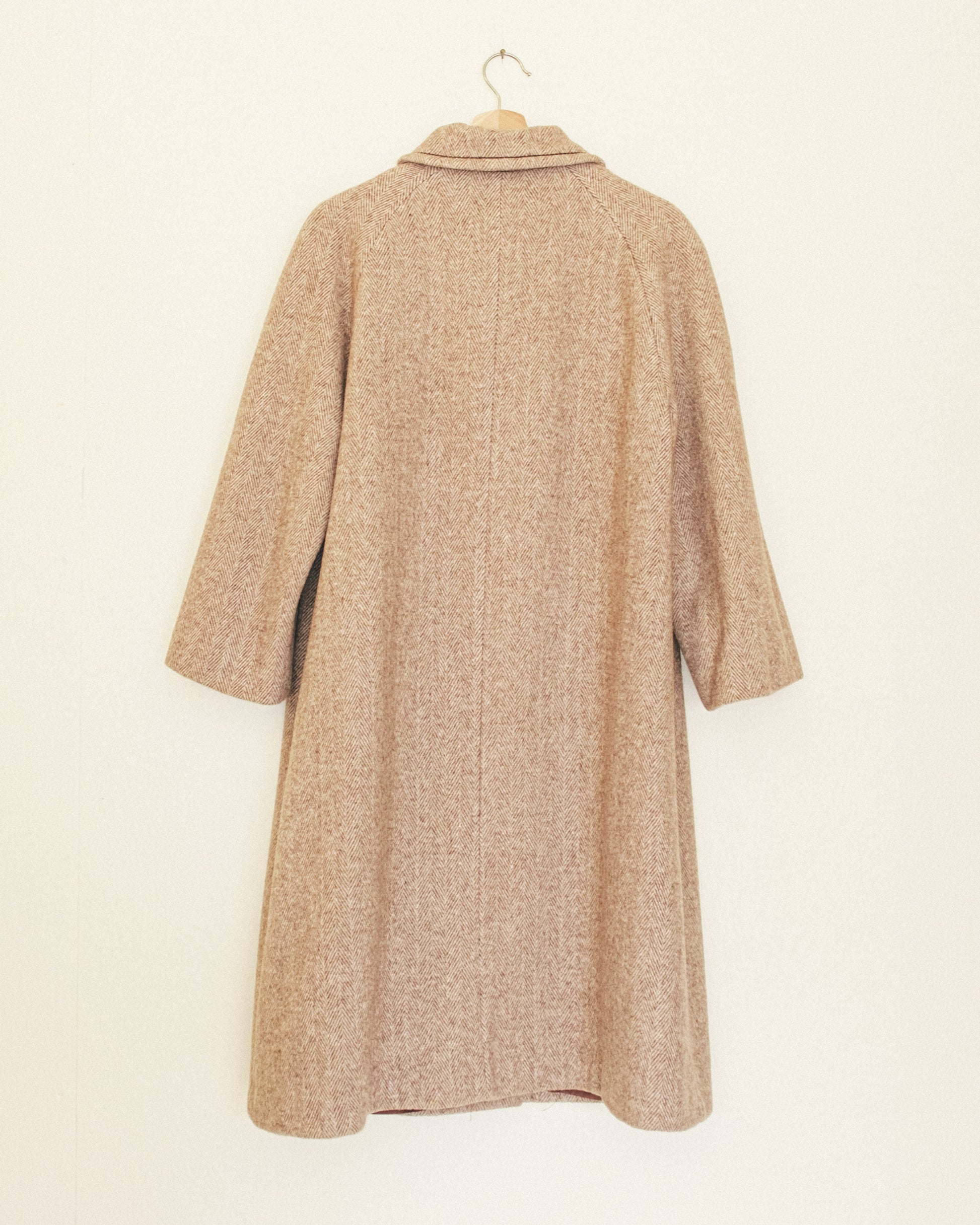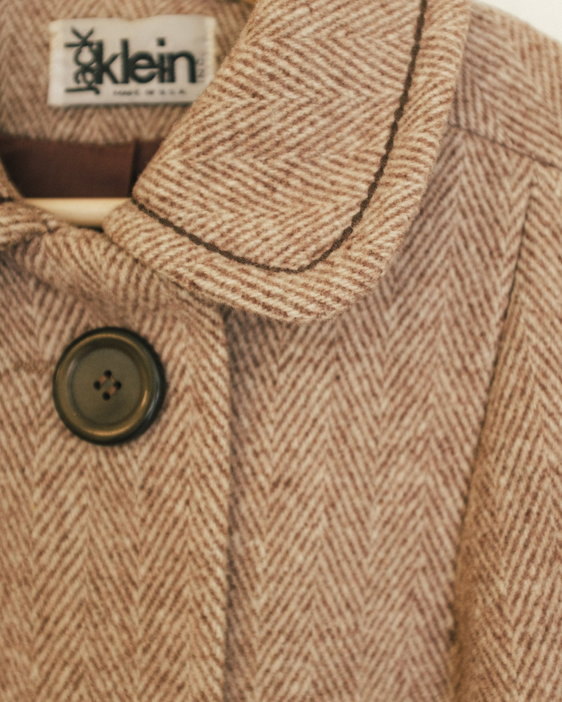 60/70's herringbone wool coat with 3/4 sleeves. Lined.