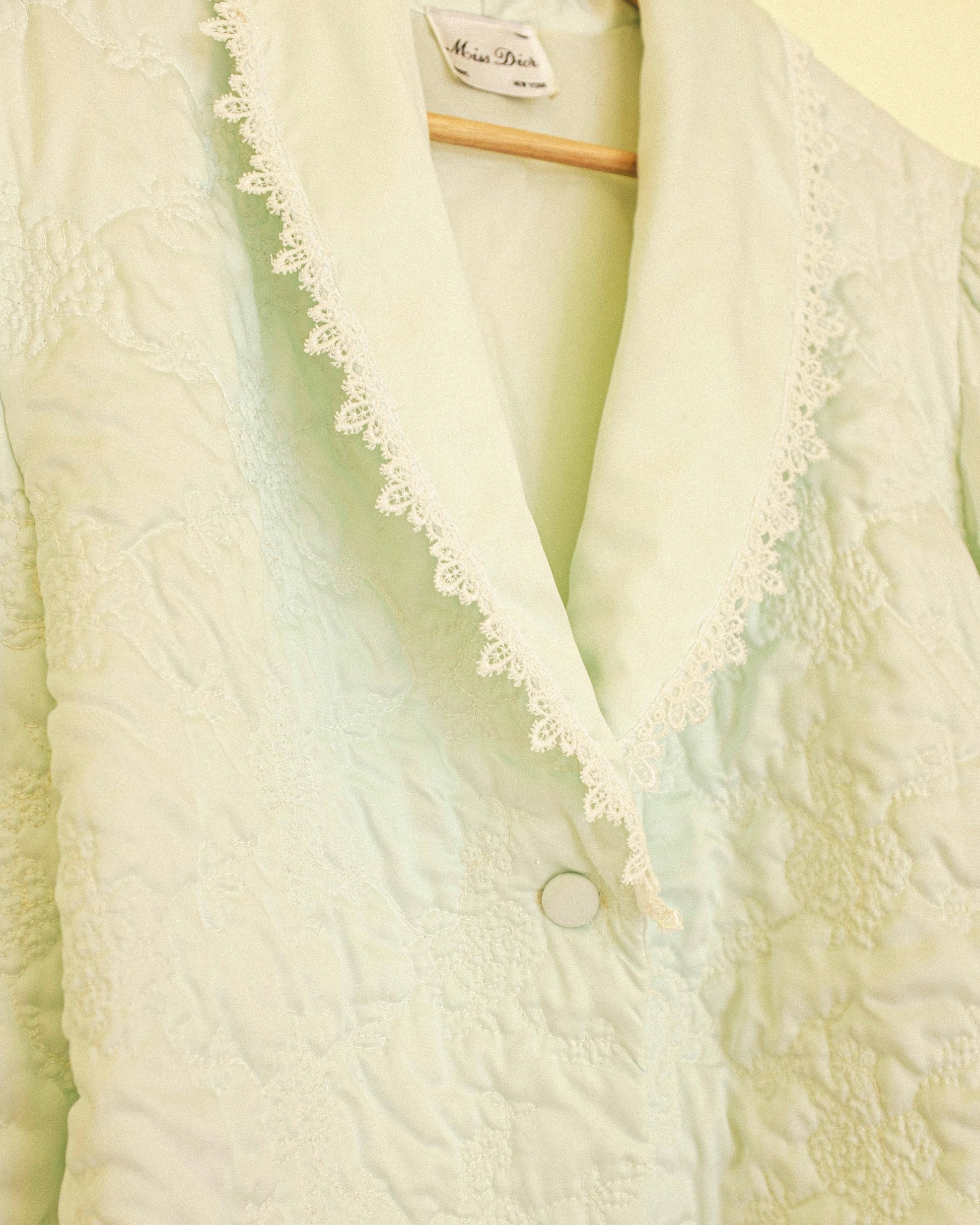 70's Miss Dior embroidered bed jacket with exaggerated sleeves.