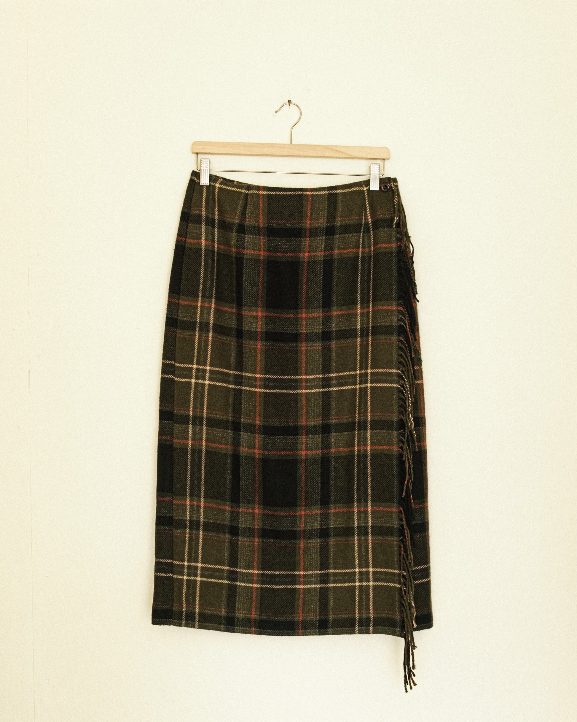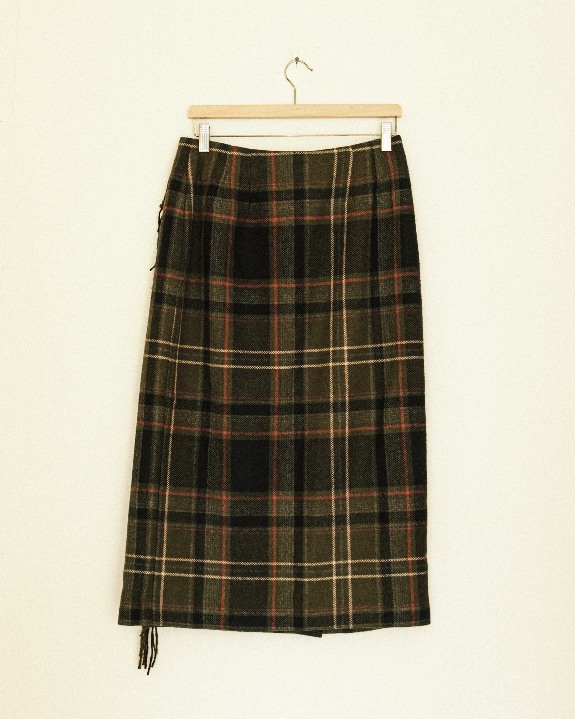 Olive Plaid Wrap Skirt