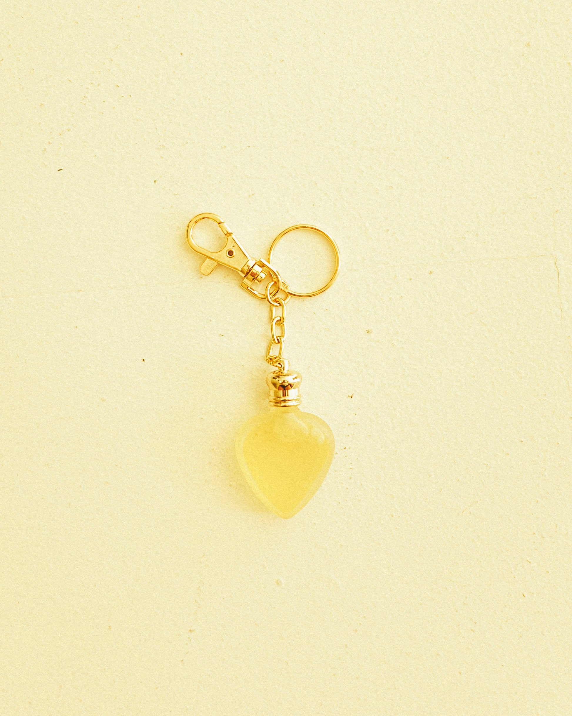 Each perfume charm is handmade frosted glass with a screw top keychain and splash-on opening. Clip onto your bag or keychain to carry a scent ritual alongside you.