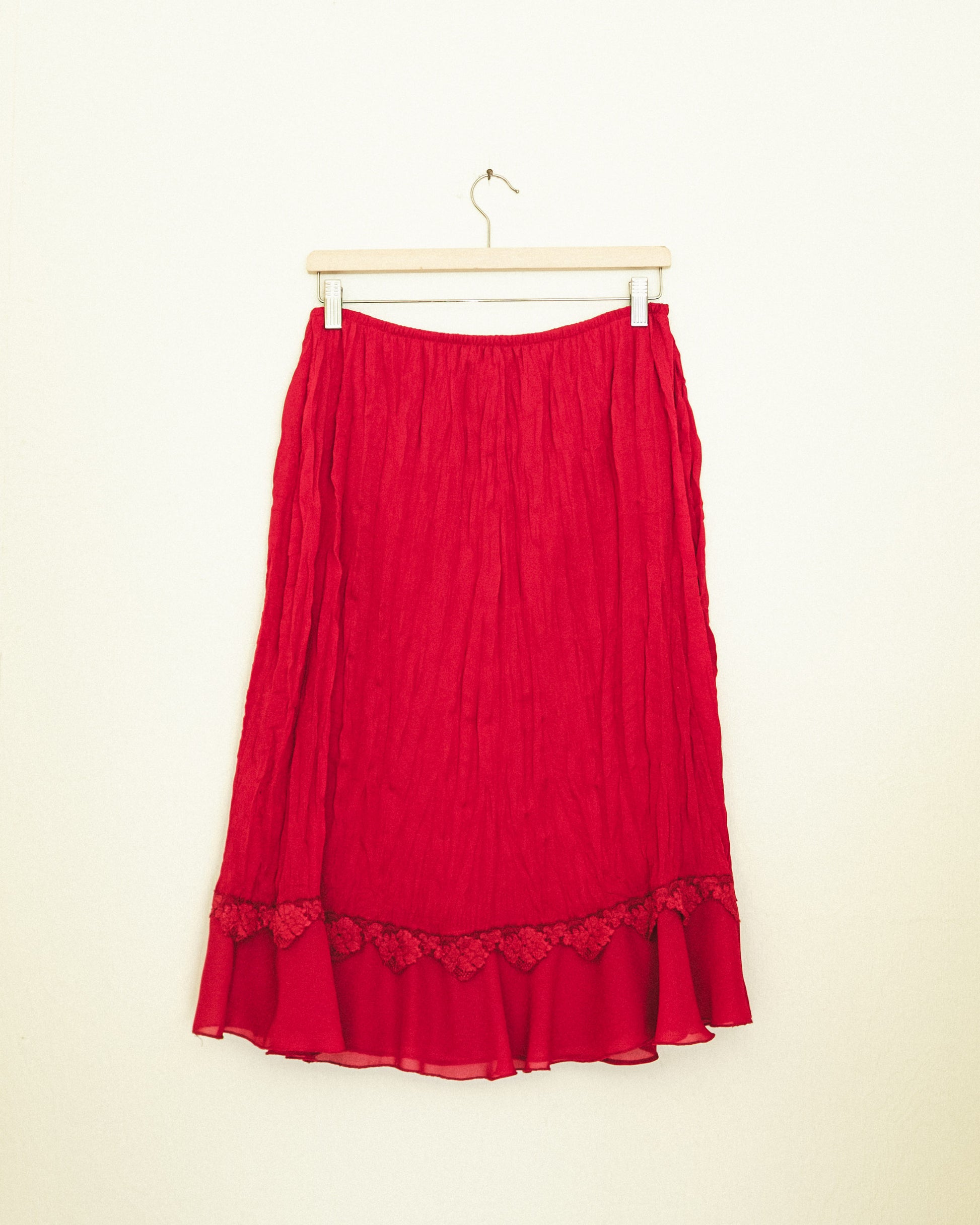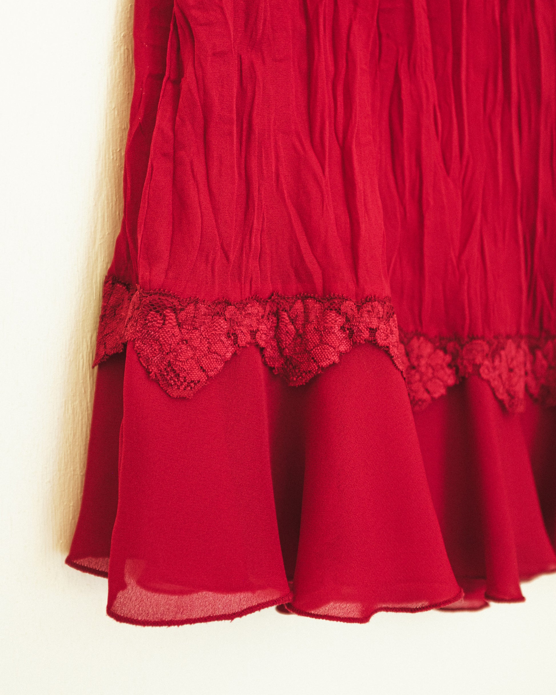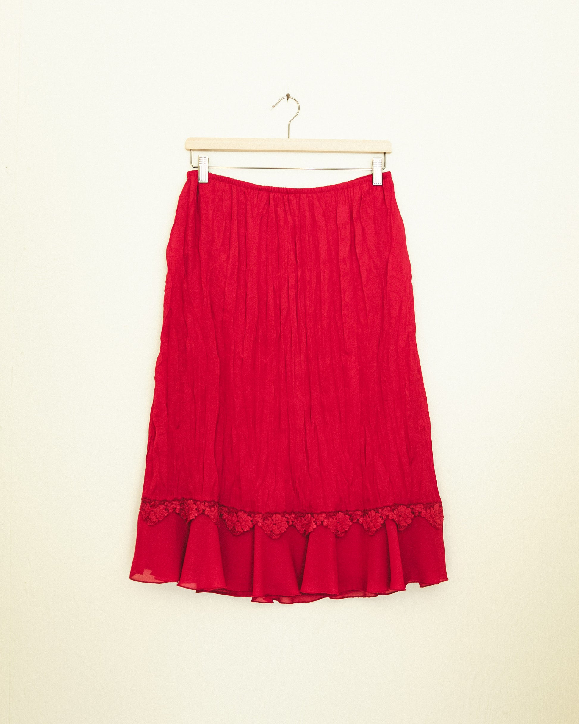 90/Y2k chiffon crinkle midi skirt with lace detail.