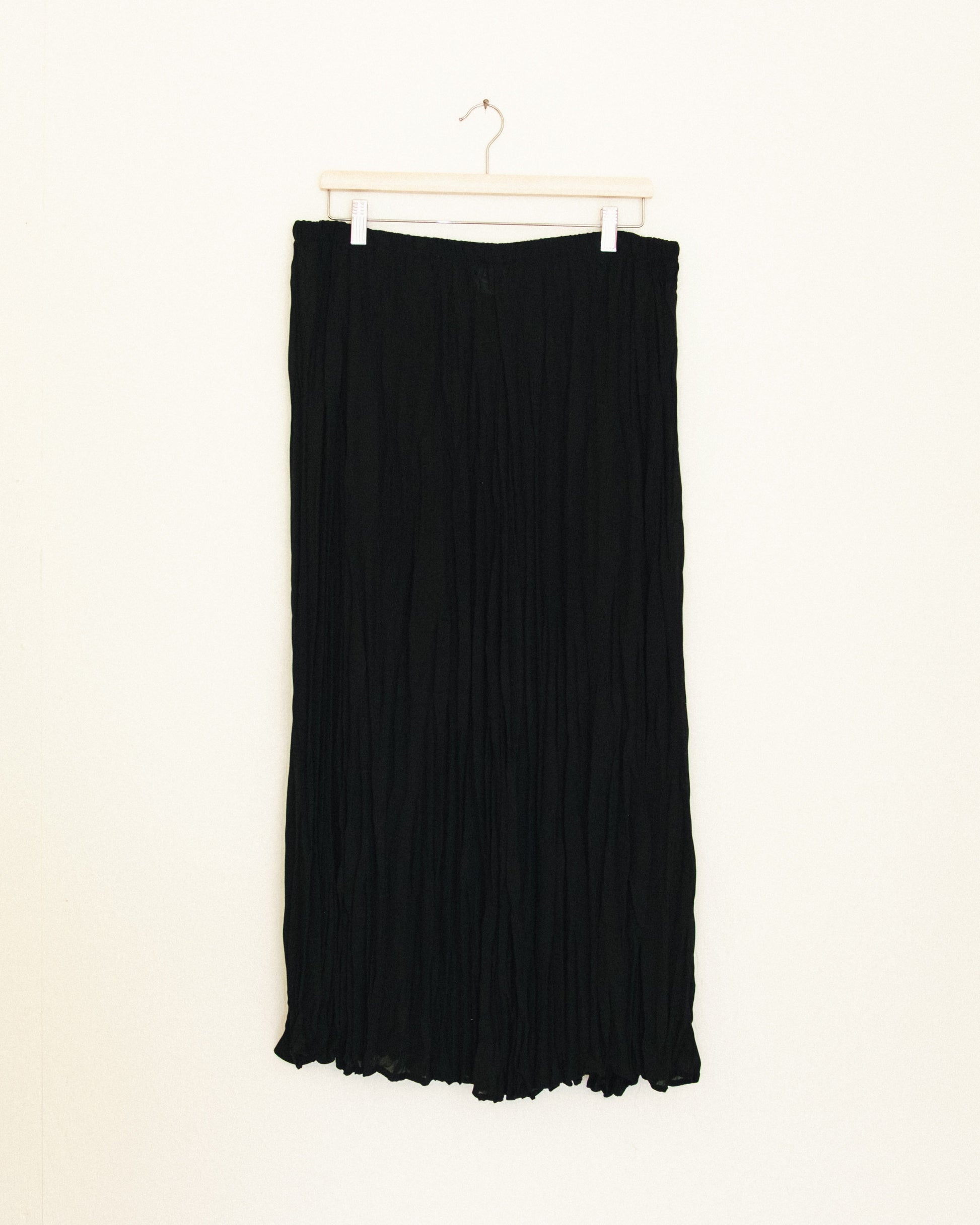 90's black sheer crinkle midi skirt.