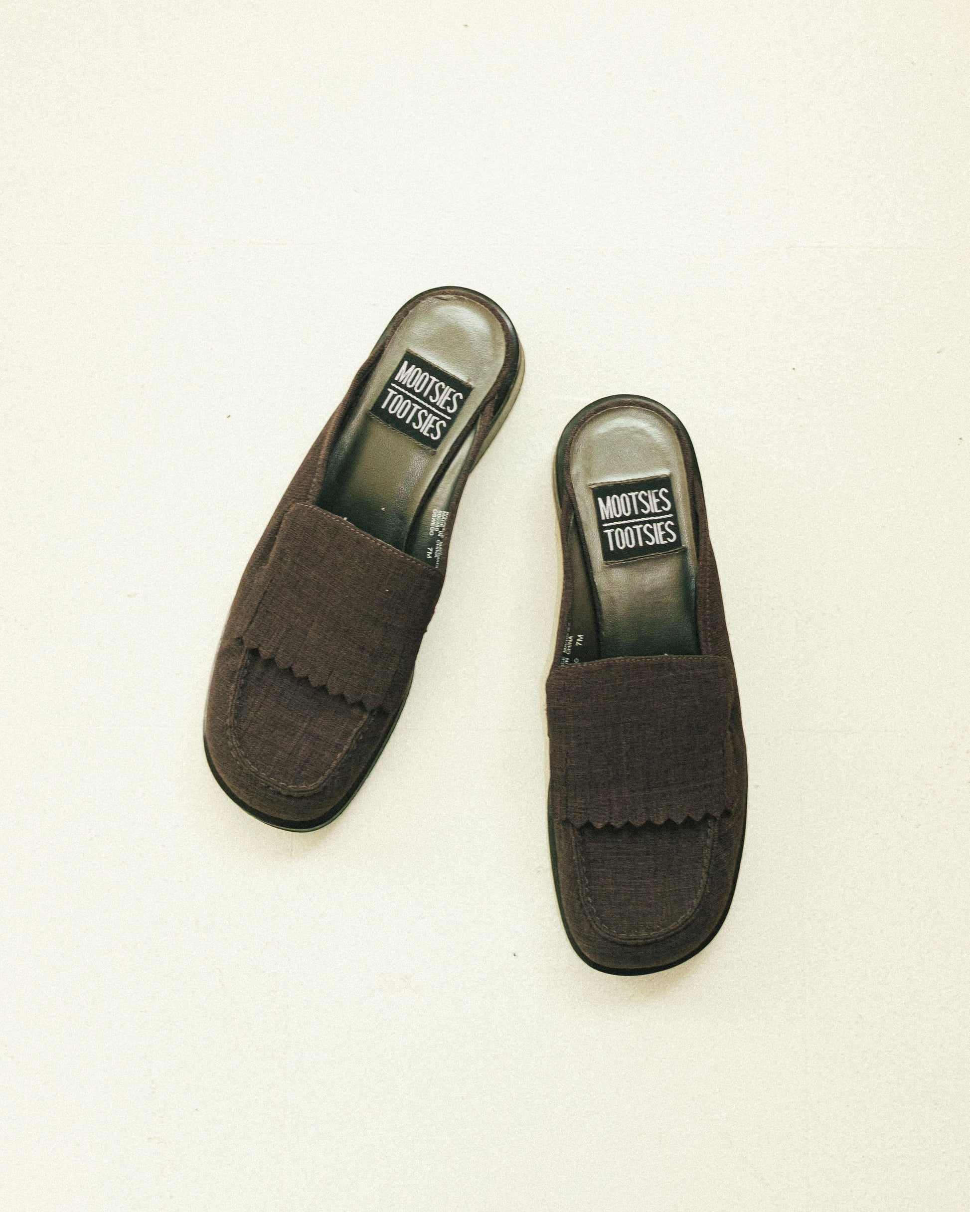 90's fabric loafer slides.
